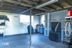 Downstairs, the home provides an electric gate that opens to two covered car spaces plus a practical tool locker and storage area. This space offers excellent functionality for vehicles, hobbies, workshop use or additional storage.