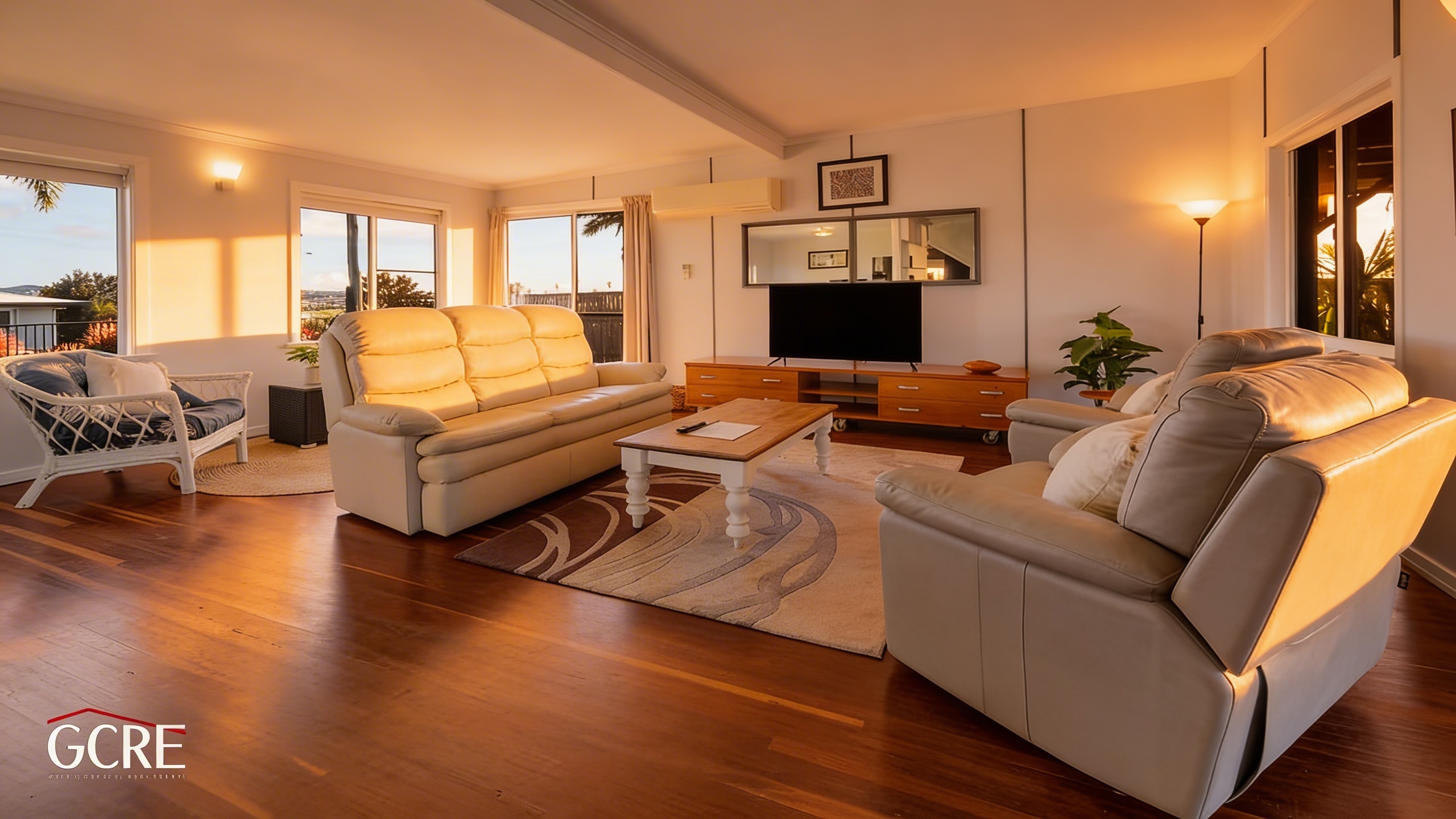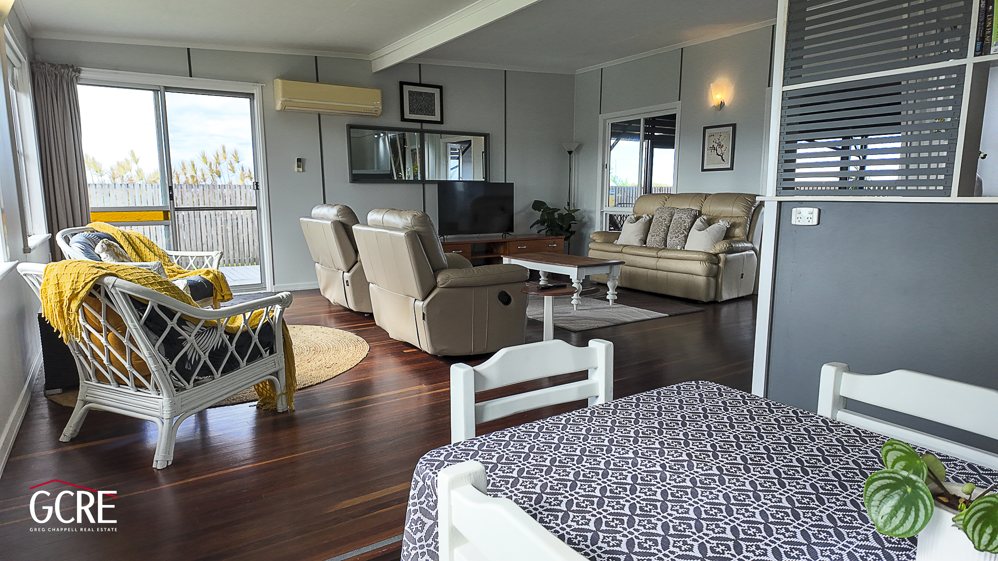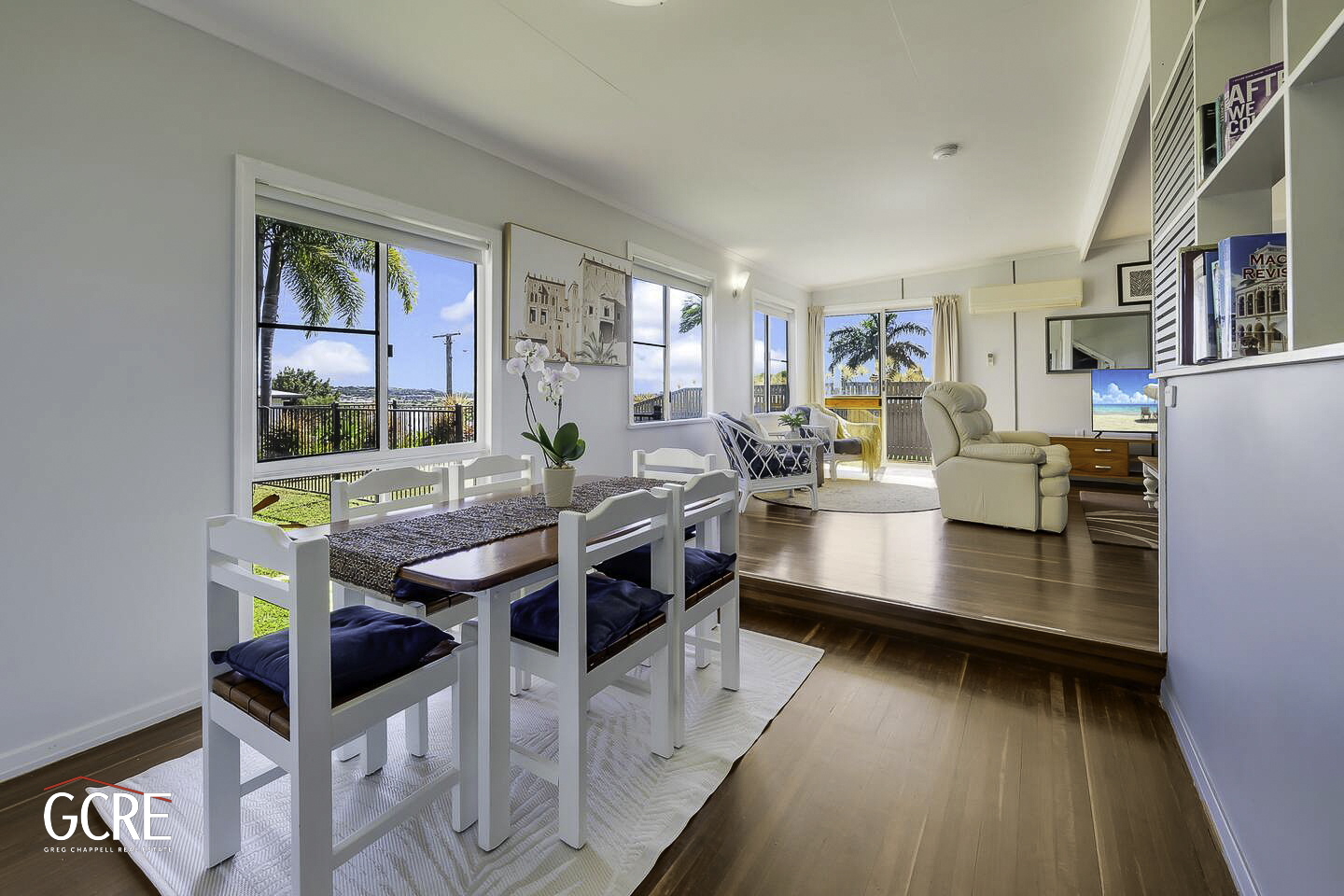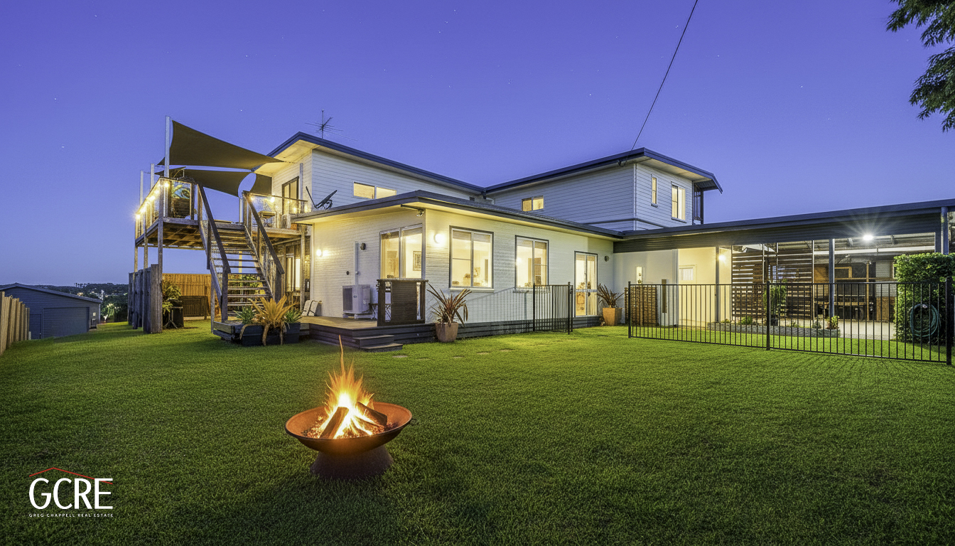 The spacious five-bedroom, 3 bathroom home is spread across two levels and has been designed for comfortable family living, entertaining and multi-generational accommodation. The master suite features a private deck to take in the views, a walk-through robe and ensuite, while the remaining bedrooms are air-conditioned and serviced by a central bathroom. Timber and hardwood flooring enhance the living areas, and the modern kitchen offers quality appliances and generous bench space, flowing into open-plan living and dining zones.