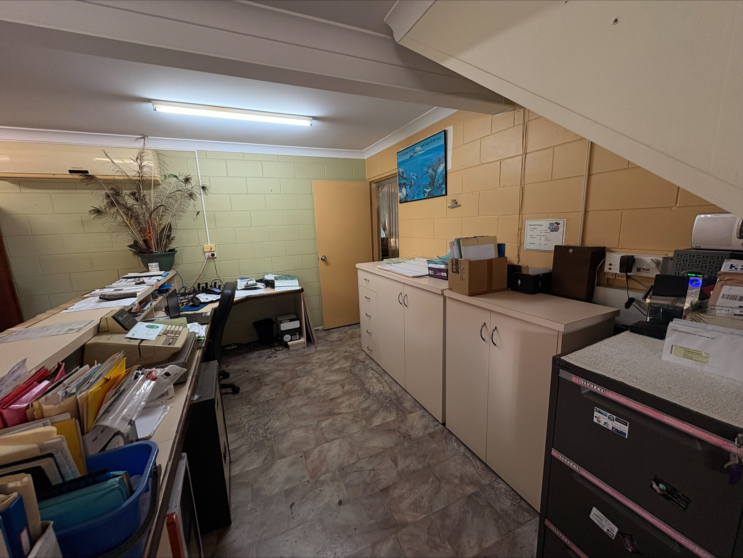 Downstairs was previously designed to be a lobby area, there you will find a large space with room to fulfil many different business plans. This leads through to a kitchenette/ laundry with double washing machine plumbing, a rumpus room and furthermore that leads through to a storage/ tool space with unlimited potential which was previously used as a gargage.